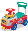 自宅近くの「浜松中央福祉センター」(毎月身体測定に行っているところ)で 毎週月曜日に乳幼児対象の「子供広場」という集いを開催しています。 10月から1月まで月曜日は忙しかったので瑠衣を連れて行っていなかった のですが、久しぶりに行ってみる事にしました。 この集いの参加は2回目です。前回は生後6ヶ月児から3歳児までのいろい ろな大きさの子供が参加していたのですが、今回は瑠衣以外は皆ヨチヨチ 歩き始めた1歳児前後の子供ばかりでした。 瑠衣はみんなの中に入ると『BIGサイズ』。すっかりお姉さんでした。瑠衣は 他の子供に興味を示さず、脚で蹴る乗り物遊具を見つけると早速乗り回し 始めました。初めて乗ったのですが割りと上手に運転(?)していました。 するとヨチヨチ歩きの女の子が瑠衣のそばにやってきてトントンと腕を突 付いてきたので、瑠衣が払いのけるのではないかと心配したのですが、女の子 をじっと見て「なーにー」と話しかけていました。女の子が返答が出来ないでい ると「あぶないですー」とぶつからない様に方向転換してドライブを続行してい ました。どうやら乱暴者ではないようなのでほっとしました。自宅ではかなりの お転婆なので小さい子を叩いたりしないか実は心配だったのです。 周りにいたほかのママさん達は、瑠衣と私が意思疎通が出来ているのを見て 「いいなー」「はやく大きくなってほしいな」と羨ましがっていました。瑠衣との会 話もずいぶん出来るようになっていたのだなぁ、と感慨ふけってしまいました。 そんな風にしみじみしていると瑠衣は今度は1歳半くらいの男の子に乗り物の 後ろの部分を押してもらって自分の足では蹴らずに自動走行を楽しんでいました。 どうやら男の子は後ろから「カタカタ」(手押し車)のように押す事が好きなようで、 男の子のママも笑って見ていました。 先ほどまでは「お姉さんみたい」でしたが「舎弟に遊具を押させている姉御」のよ うにになってしまいました。 そんなこんなの「子供広場」体験でした。 左の画像は瑠衣が乗っていた遊具です。遊んでいる瑠衣を撮影したかったのですが、 どうしても他の子供が写ってしまうので遠慮しておきました。【残念】